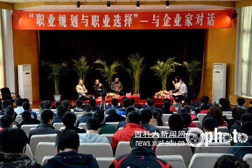 12月8日下午,由研究生学院主办的“职业规划与职业选择”——与企业家对话活动在雁塔校区主楼报告厅举行。副校长马宏伟、研究生学院负责人、参加第二届煤炭工业发展与高层次人才培养论坛的嘉宾以及硕士研究生共300余人参加了此次活动。 活动现场,主持人与参会嘉宾就煤炭企业与我、煤炭企业发展新模式、个人成长历程与人生阅历、人生职业规划等主题进行了访谈,嘉宾就研究生关心的职业规划等问题与学生进行了现场交流。现场学生提问积极踊跃,嘉宾回答妙语连珠,气氛热烈,掌声不断。