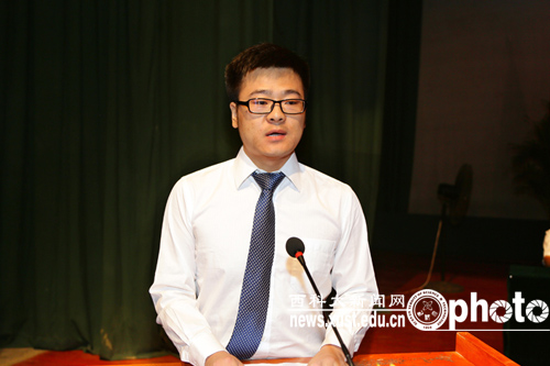 校长苏三庆在毕业典礼上讲了话,代表学校向全体毕业研究生表示祝贺,向研究生导师、广大教职工表示问候,向毕业生父母、亲属表示感谢。苏校长向毕业生提出了四点希望:第一,希望同学们志存高远,追逐梦想;第二,希望同学们与时俱进,勇于创新;第三,希望同学们勤学善思,知行合一;第四,希望同学们饮水思源,心系母校。苏校长最后祝愿全体毕业研究生一帆风顺、前程似锦。