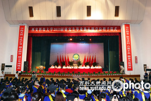 6月28日上午,英国365集团官网在雁塔校区大学生活动中心隆重举行2013届研究生毕业典礼暨学位授予仪式。校党委书记刘德安,校长苏三庆,党委副书记张立杰、甘安生,副校长杨更社、马宏伟、张金锁、李树刚,校学位委员会全体成员,各分学位委员会主席,各单位、各部门党政主要负责人,各学院(部)分管学生工作的书记、分管研究生工作的院长(主任),全体研究生导师,研究生亲属代表和全体2013届毕业研究生参加了毕业典礼。