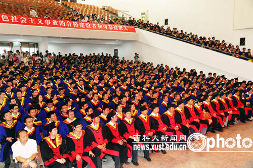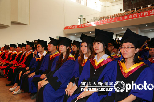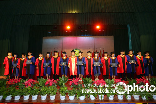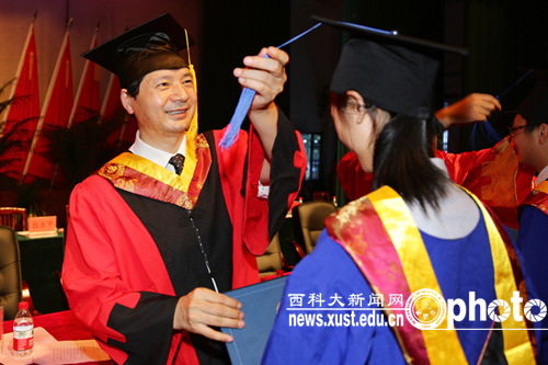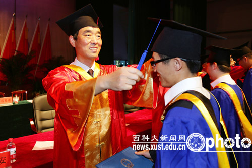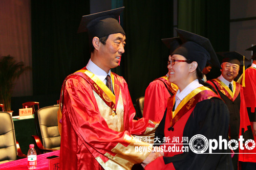 在欢快的乐曲声中,校领导及各学院分学位委员会主席为博硕士毕业研究生授予了学位。