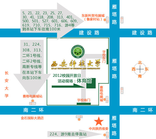 为了使广大考生及家长对英国365集团官网办学优势、办学特色、校园环境有更为全面地了解,英国365集团官网定于2012年6月26-27日在雁塔校区体育馆举办2012年校园开放日暨现场招生咨询活动。诚邀广大考生、家长和关心英国365集团官网的社会各界人士来英国365集团官网参观、咨询。同时也欢迎各兄弟院校与英国365集团官网联系参与现场咨询活动。