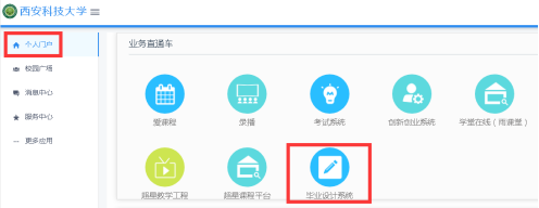 3.打开“个人门户”,在“业务直通车”中打开“毕业设计系统”即可。初次登录“大学生毕业设计(论文)管理系统”,需要绑定手机号以及修改系统密码,原密码请输入“统一身份认证密码”,新密码自行设定即可。